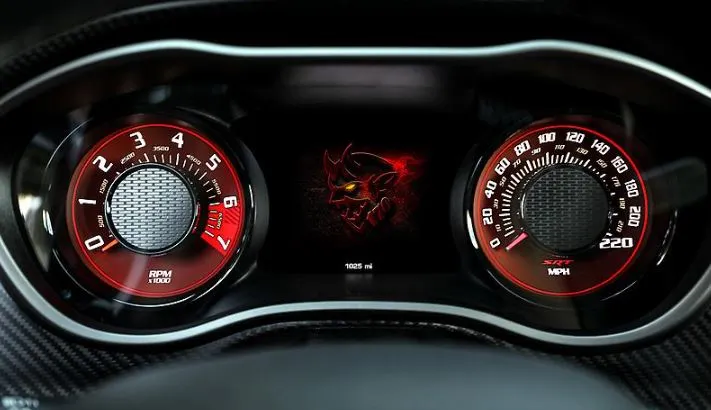 La Challenger, aussi Demon soit-elle, reste une bonne vieille Muscle Car au look ravageur. Large de plus de 1,9 mètres, dépassant les 5 mètres de long, la 170 en impose. Pas aussi actuelles que les Mustang et Camaro, elle joue le rôle de la dernière vraie Muscle Car 100% américaine et absolument pas faite pour séduire les Européens. Un mal ? Au contraire ! Là est son charme. Elle jouait la carte du néo-rétro avant toutes les autres, avec une ligne forcément inspirée de la première du nom, déjà longue comme un paquebot. L’intérieur ne réserve pas de surprises, il reste identique à celui du coupé classique. Toujours ces mêmes sièges hideux, au dossier plus qu’épais. Toujours cette même planche de bord qui rappelle son âge… Il faut dire que depuis 2008, le coupé n’a connu que des restylages, aucune remplaçante réelle. Ce qui l’intéresse, ce n’est pas la connectivité mais les capacités d’accélération. Et elle en connaît un rayon !