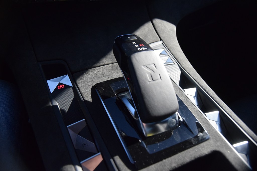 Arrivé au DS Store du Mans, le commercial nous donne les clefs de son propre véhicule, celui qu’il utilise tous les jours, un DS7 Crossback Performance Line +. Pour la première fois de ma vie, je vais rouler dans un SUV hybride. Il ne s’agit pas de ma première fois en hybride, j’avais déjà fait une trentaine de kilomètres à bord d’une BMW i8. Mais le DS7, c’est autre chose. Après avoir montrer comment fonctionne une boîte automatique, notre charmant commercial nous laisse réaliser un essai de ce SUV. Passé l’euphorie du « euh, il nous laisse vraiment sa voiture ? », nous nous mettons en route, avec deux amis sur les sièges arrière, dont notre photographe. Ne restant seulement 18 km d’autonomie en électrique, nous lui préférons le mode hybride, pour conserver le punch de l’hybride et l’allonge du 4 cylindres. Au total, ce SUV développe 225 chevaux, distribués aux quatre coins de la voiture. A l’accélération, à un feu tricolore, les étalons sont bien perceptibles. Aucune perte d’adhérence. Cependant, la boîte de vitesses peine, parfois, à passer les vitesses, lorsqu’elle est trop sollicitée. Cela dit, on ne lui demande pas d’être un foudre de guerre, seulement ne pas donner trop d’à coups à l’accélération. Sauf que, lorsque celle-ci est très – trop ? – franche, elle se demande ce qu’elle doit faire réellement. Heureusement, les palettes permettent de faire oublier ce problème.