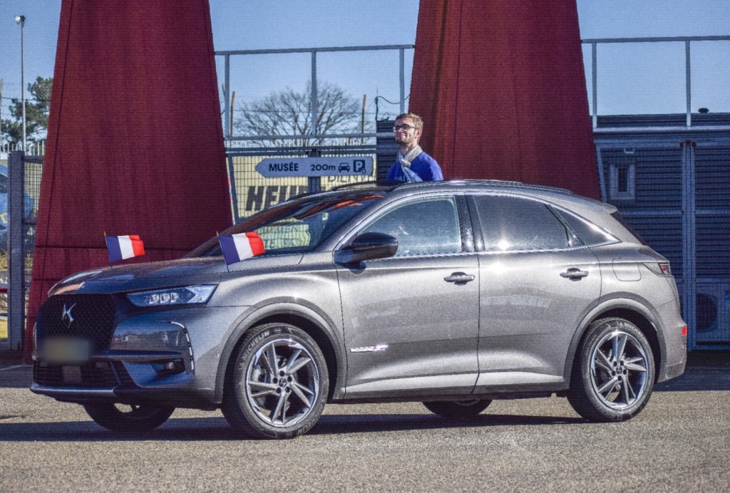 Séance photo terminée, j’échange mon siège avec notre photographe, direction un autre espace shooting. Entre ces deux endroits, je joue avec les sièges. En effet, à l’arrière aussi, les sièges peuvent se basculer d’une dizaine de degrés, pour faciliter l’endormissement sans doute. Encore un petit détail… Sauf qu’à un moment, j’ai arrêté, le frottement des sièges avec celui du milieu ne m’inspirait guère confiance. Quant aux fenêtres avec lesquelles je jouais tout à l’heure, elles ne s’ouvrent pas entièrement, comme le Captur… Une petite dizaine de kilomètres encore, et nous voilà arrivés devant ce nouveau décor : l’entrée principale du circuit Bugatti, et donc des 24h du Mans. Le temps que notre photographe prenne la pose, puis que le DS7 prenne la sienne, je décide de reculer le siège avant passager, vide à ce moment-là, pour voir l’espace aux jambes derrière. Pour être honnête, je ne pensais pas qu’il y allait avoir autant d’espace. Et c’est alors que l’on se prend au jeu.
