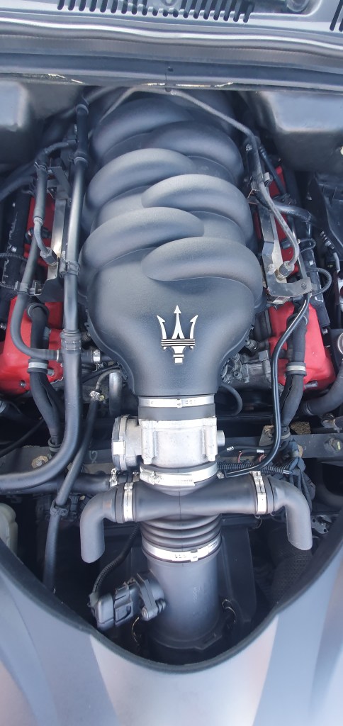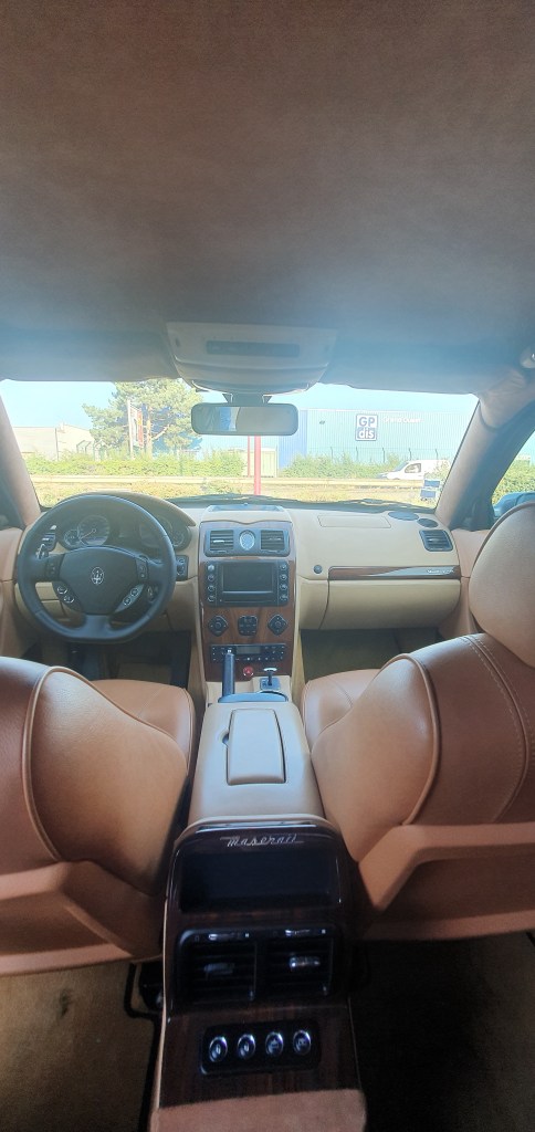 Italienne oblige, la finition n’est non pas médiocre mais pas vraiment au niveau de celle des concurrentes qu’elle a dans sa ligne de mire. Le volant, par exemple, se décolle. Les cuirs sont marqués, le ciel de toit a dû être refait, la boîte à gant électrique n’a plus de retenue. La console centrale compte des boutons d’origine Fiat. Quant au GPS, il a pris un beau coup de vieux. A ce prix-là, les acheteurs de ce véhicule neuf pensaient-ils que leurs Quattroporte allaient aussi mal vieillir ? Car aujourd’hui, elle s’échange à moins de 20.000€. Le prix d’une belle carrosserie d’italienne, et les défauts qui vont avec. Pour ce tarif, vous avez aussi droit à une cathédrale mécanique.
