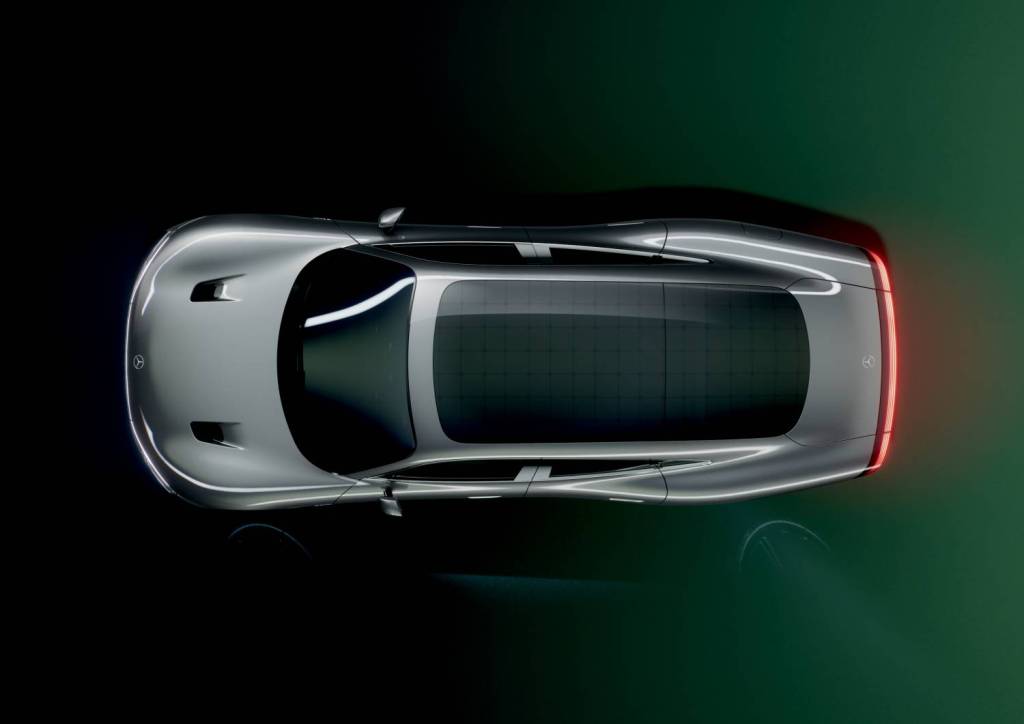 La batterie est logée sous le plancher de la voiture, mais elle risque de chauffer à la conduite. Mercedes a prévu le coup, et a imaginé un système de clapets sous la voiture qui guidera l’air pour refroidir la batterie. Normalement, un tel système n’est pas compatible avec l’efficience tant vantée par la marque, mais le système est si bien intégré et pensé qu’il ne fait régresser le Cx que de 0,003 point. La voiture dispose de panneaux solaires sur le toit, permettant à la voiture de gagner jusqu’à 25 km d’autonomie, suivant les conditions. Les pneus spécialement réalisés pour le concept par Bridgestone recouvrent des jantes en magnésium (20 pouces à l’avant et 21 à l’arrière), pour la légèreté. Ainsi pourvue, et lorsque la batterie est chargée à son maximum, le Vision EQXX promet parcourir jusqu’à 1000 km d’autonomie en une seule charge.