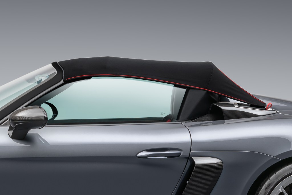 Comme si Porsche n’assumait pas ses derniers changements, la marque revient en arrière sur plusieurs points. À la présentation du 718, remplaçant le couple Boxster/Cayman Type 981 aux 6 cylindres atmosphériques fabuleux, la baie moteur ne devait accueillir que des 4 cylindres 2.0 turbo. En tous cas, dans ses versions de lancement, normal et S. Puis est arrivée la version GT4. Et les versions GTS. Et le Boxster Spyder, nous réconciliant ainsi avec le reptile grâce au 6 à plat atmosphérique de la grande sœur. Comme quoi, c’est dans les vieux pots… Avec l’avènement de l’électrique, et la promesse que la prochaine génération de coupé/cabriolet à moteur central ne produira pas d’émission (émotion ?), Porsche a poussé tous les curseurs au maximum sur cette dernière génération thermique. Ainsi avons-nous vu venir le merveilleux GT4 RS. Bestial, magnifique, unique… Parfait ? Peut-être pas non plus. Mais… Pour Porsche, il restait encore une place à prendre. Si, entre le fromage (Spyder) et le dessert (GT4 RS), il manquait une version découvrable non ?