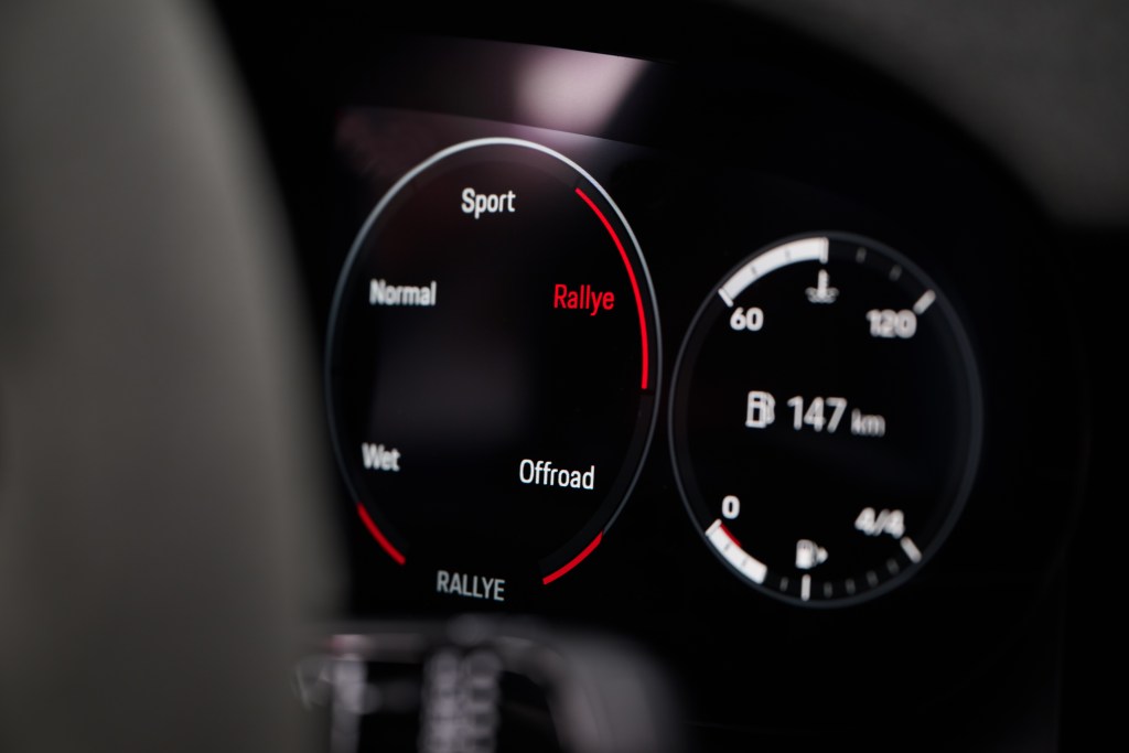 Le premier est le mode Rallye. Porsche nous dit qu’il est idéal pour les sols meubles et irréguliers avec une prédominance du couple vers le train arrière. De quoi assurer quelques virgules ! Le plus extrême se nomme Offroad. Là où l’adhérence est là moins bonne, le mode Offroad est idéal. D’office, en passant sur ce mode, la garde au sol se réhausse de 30mm en rejoignant le « Niveau Haut ». Ces deux modes de conduite bénéficient également d’un launch control fait pour ces sols peu adhérents, permettant un patinage de 20% afin de détaler le plus vite possible… jusqu’à 170 km/h.