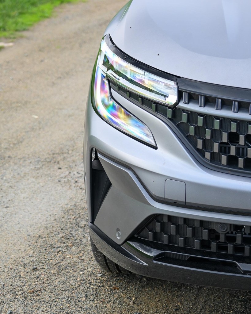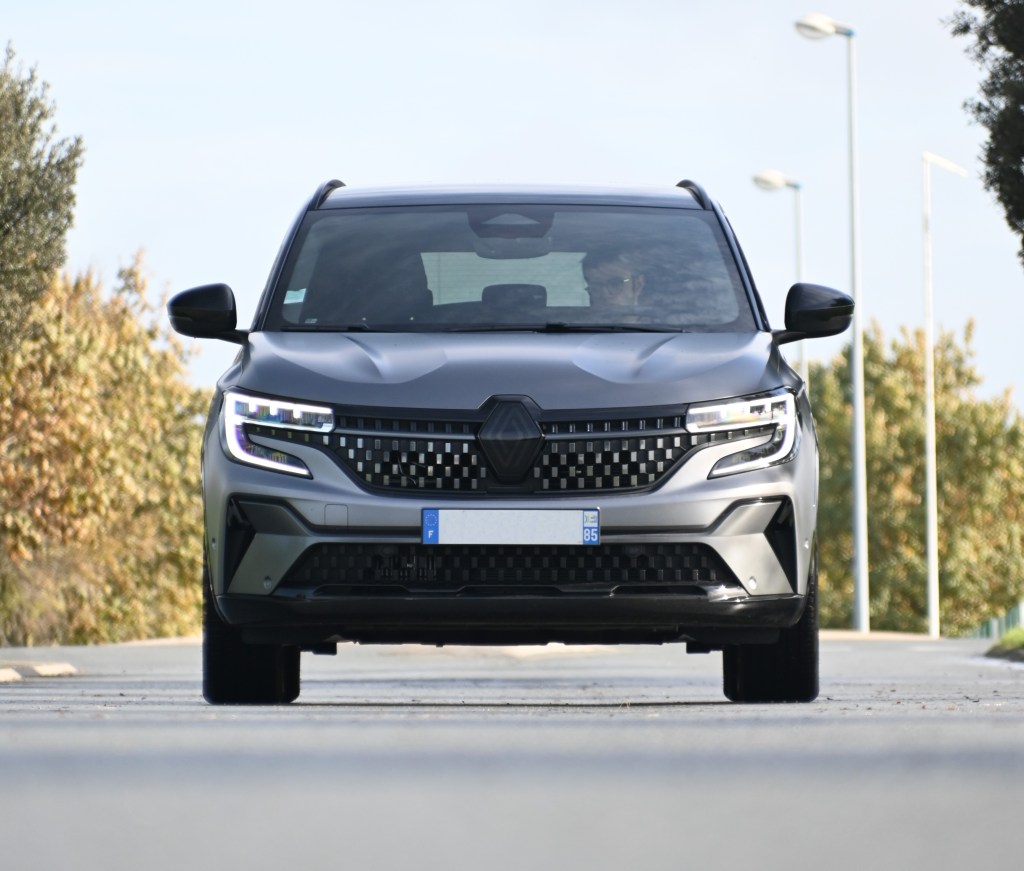 Comme toujours, regardons d’abord l’extérieur. Par rapport au modèle sortant, l’Austral gagne en muscles, en taille. Il en impose, il semble sûr de sa proposition, ce qui péchait grandement dans le Kadjar. Son apparence est plus haut de gamme. Si le précédent SUV arborait des protections en plastique noir loin d’être de bonne facture, ici l’Austral maquille tout ça. Le look est plus statutaire. La couleur que notre modèle d’essai arbore demande 2200€ et répond au doux nom de gris schiste satin, associé au toit noir. Le nouveau logo (Nouvel’R) se camoufle en se mettant au noir. Les signatures lumineuses avant et arrière imitent les ténors du premium en jouant une chorégraphie d’éclairage. Une somme de détails qui feront, peut-être, la différence à l’achat ou qui, en tous cas, montrent que Renault est prêt à aller jusque dans les détails pour monter en gamme.