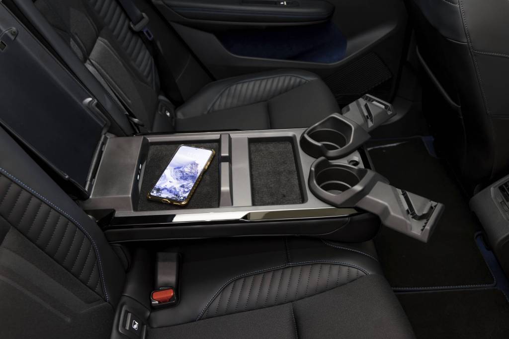 Les poignées de portes affleurantes du plus bel effet laissent apparaître un habitacle dans la nouvelle ère Renault. On y redécouvre les éléments auxquels on s’habitue désormais, comme l’OpenR de 954cm2 en L inversé, toujours aussi intuitif. Tout le long de largeur, les aérateurs augmentent cette impression d’espace à l’intérieur. Le toit bénéficie de l’innovation intégrée sur l’Espace, avec le toit panoramique opacifiant Solarbay® Amplisky. Pour rappel, il s’opacifie à la demande totalement, pas du tout, juste à l’avant ou juste à l’arrière, grâce à des ondes électriques. Ce choix permet, d’après la marque, de gagner de l’espace en garde au toit – plus de rangement prévu pour le store – et du poids – les rails pèsent lourds… Ajoutons à cela l’accoudoir central Ingenius du Rafale, pour voyager le plus confortablement possible, augmentant le volume de rangement intérieur à 38,7 litres, et vous aurez-là un véhicule parfait pour mener les enfants à l’école.