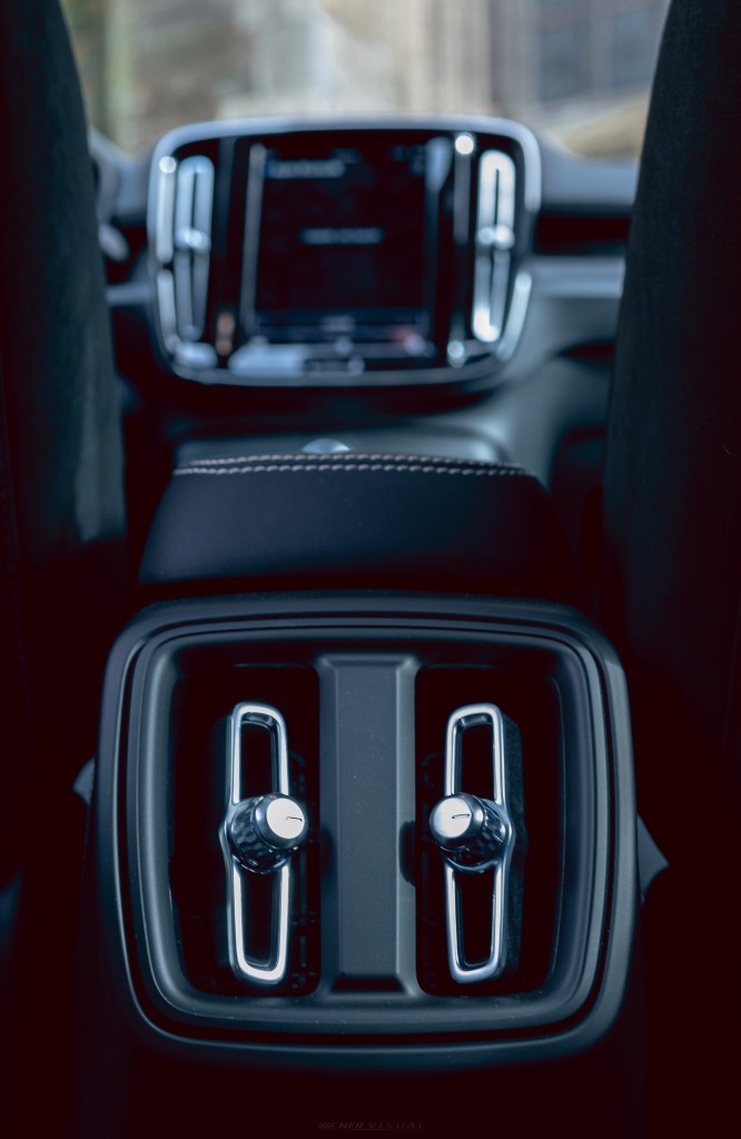 Dans l’habitacle, comme à l’extérieur, c’est du Volvo. Les habitués reprendront leurs marques, les nouveaux arrivants les trouveront rapidement. La course à la tablette la plus grande possible au milieu ne semble pas intéresser la marque qui reste avec une instrumentation de 9 pouces au centre, positionné à la verticale. Compatible Apple Car Play et Android Auto, il permettra au conducteur de connecter son téléphone rapidement et d’écouter la musique qui lui plaît facilement. Fier d’être Suédois, le C40 Recharge arbore le drapeau de son pays d’origine sur ses sièges, comme toutes les Volvo. En face le siège passager, deux types d’incrustation peuvent être installées. Nous avons eu celle baptisée Origin, mettant en avant le centre Göteborg, le siège social de la marque. En souhaitant symboliser l’avenir de la marque, le C40 préfère utiliser des matériaux toujours de qualité mais désormais recyclés pour son habitacle.