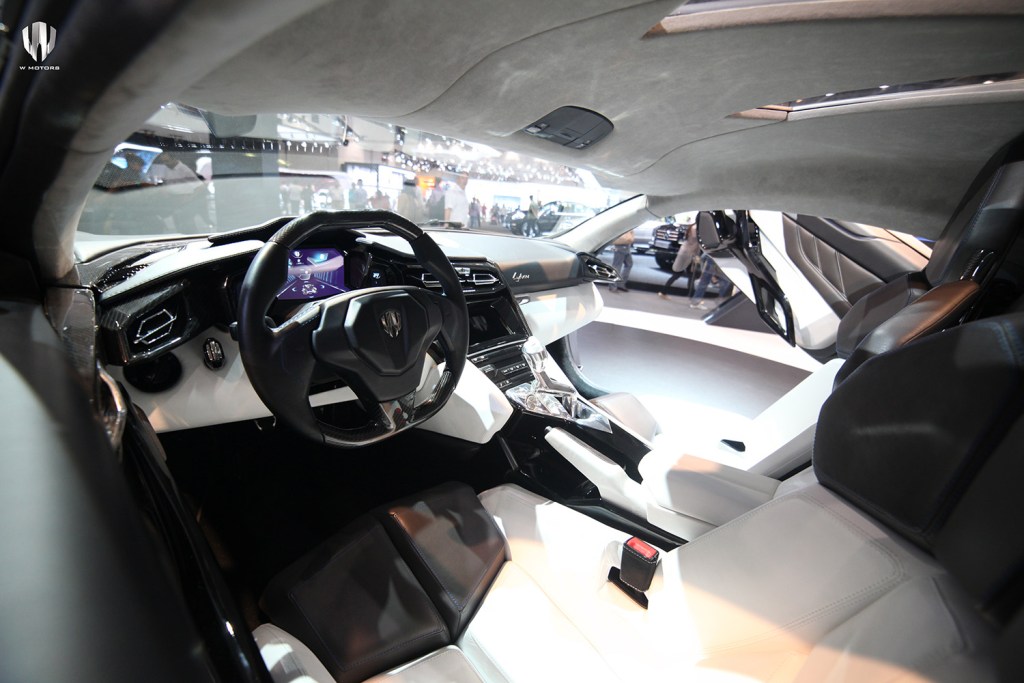 Nous pouvons lui reconnaître également sa faculté à attirer l’œil, notamment lors de l’ouverture des portes. Elles sont en « élytre inversée ». Au lieu de s’ouvrir parallèlement au montant du pare-brise, elles s’ouvrent sur le montant arrière de la fenêtre. On aura tout vu… Enfin, nous pensions avoir tout vu. Car une fois à l’intérieur, dans un habitacle forcément haut de gamme, forcément tiré à quatre épingles et hyper technologique, on découvre que la complexité traverse les portières. Au milieu, un levier de vitesse tout droit sorti de l’univers aérospatial. Plus haut, un écran tactile de 11 pouces aux reflets clinquants sied parfaitement à l’univers. Et devant le conducteur, W Motors n’a pas installé des compteurs normaux. Pas d’aiguilles, elles auraient du mal à indiquer des chiffres tant la folie s’empare aussi de la motorisation, ni de compteur numérique classique. Non, la marque a choisi d’afficher ces informations importantes par hologrammes… Pour quel intérêt ? Faire parler…
